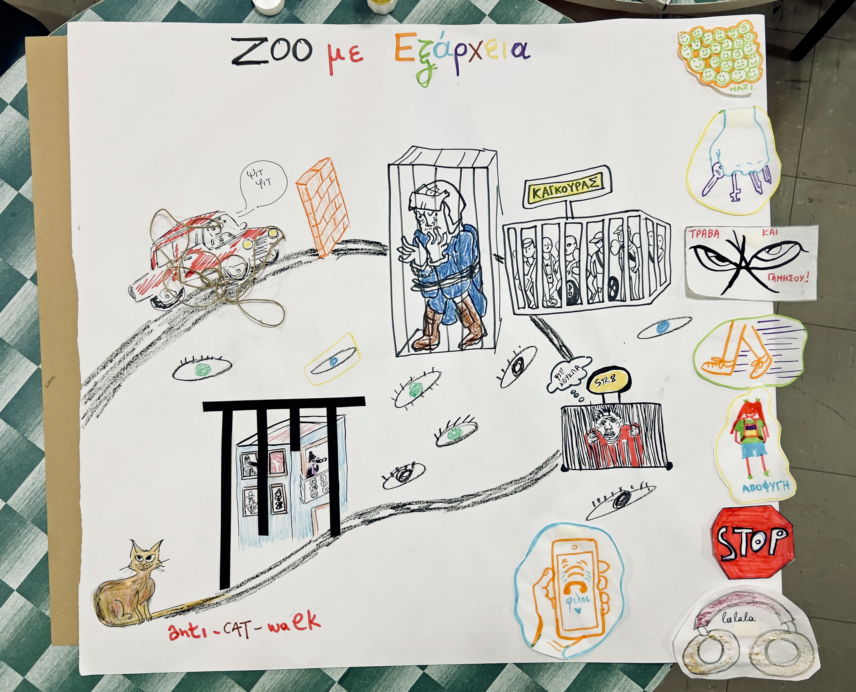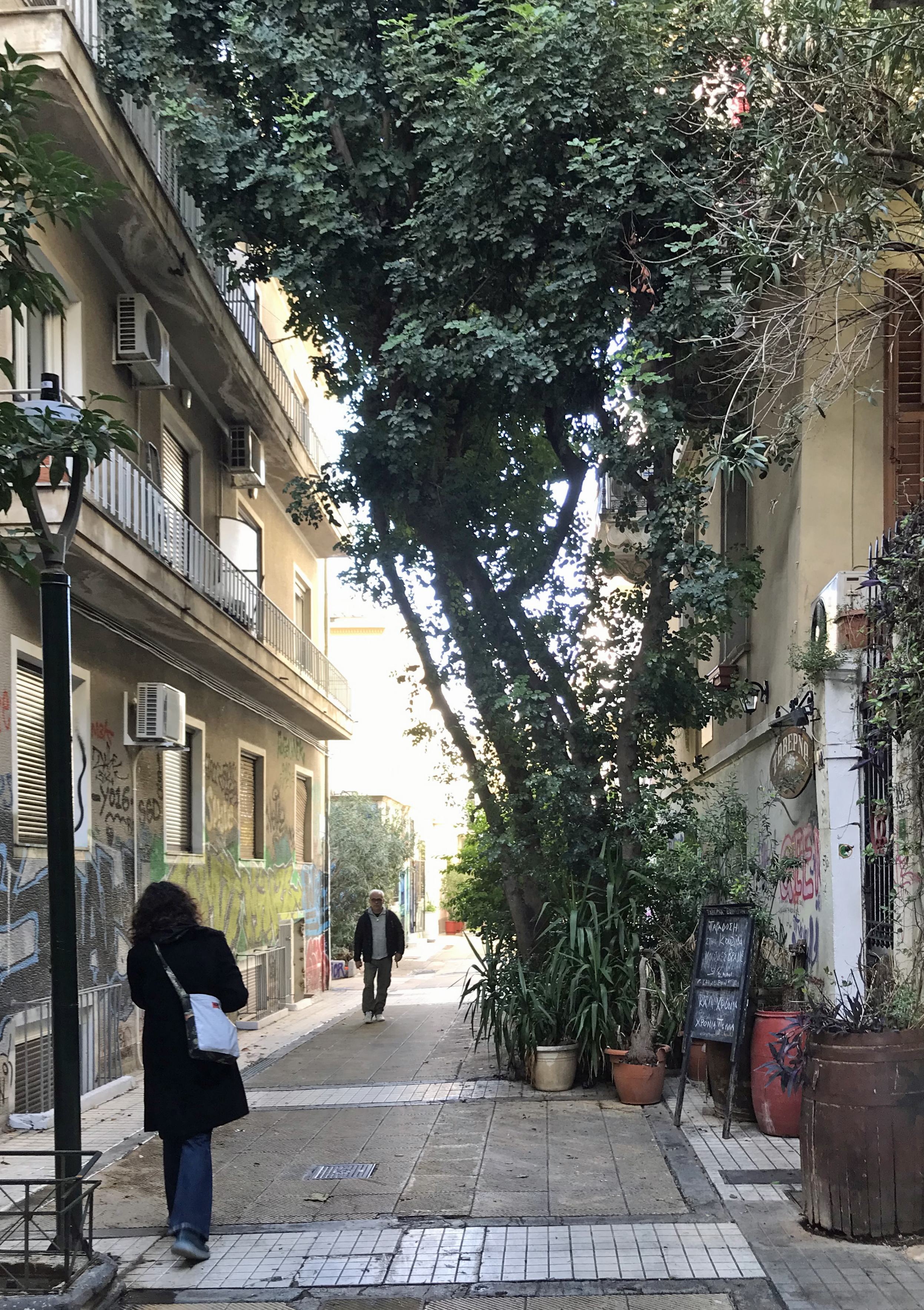Hara, l’une des organisatrices de l’atelier, fait la même anlayse : « Je suis venue vivre à Exárcheia il y a trois ans et au début, j’avais un peu peur dans la rue. Maintenant je me sens davantage en sécurité, tout simplement parce que je connais des gens ici. Je partage le même espace que mes voisines et mes voisins. Mais ce sont clairement les processus de gentrification qui créent les conditions de la violence. »