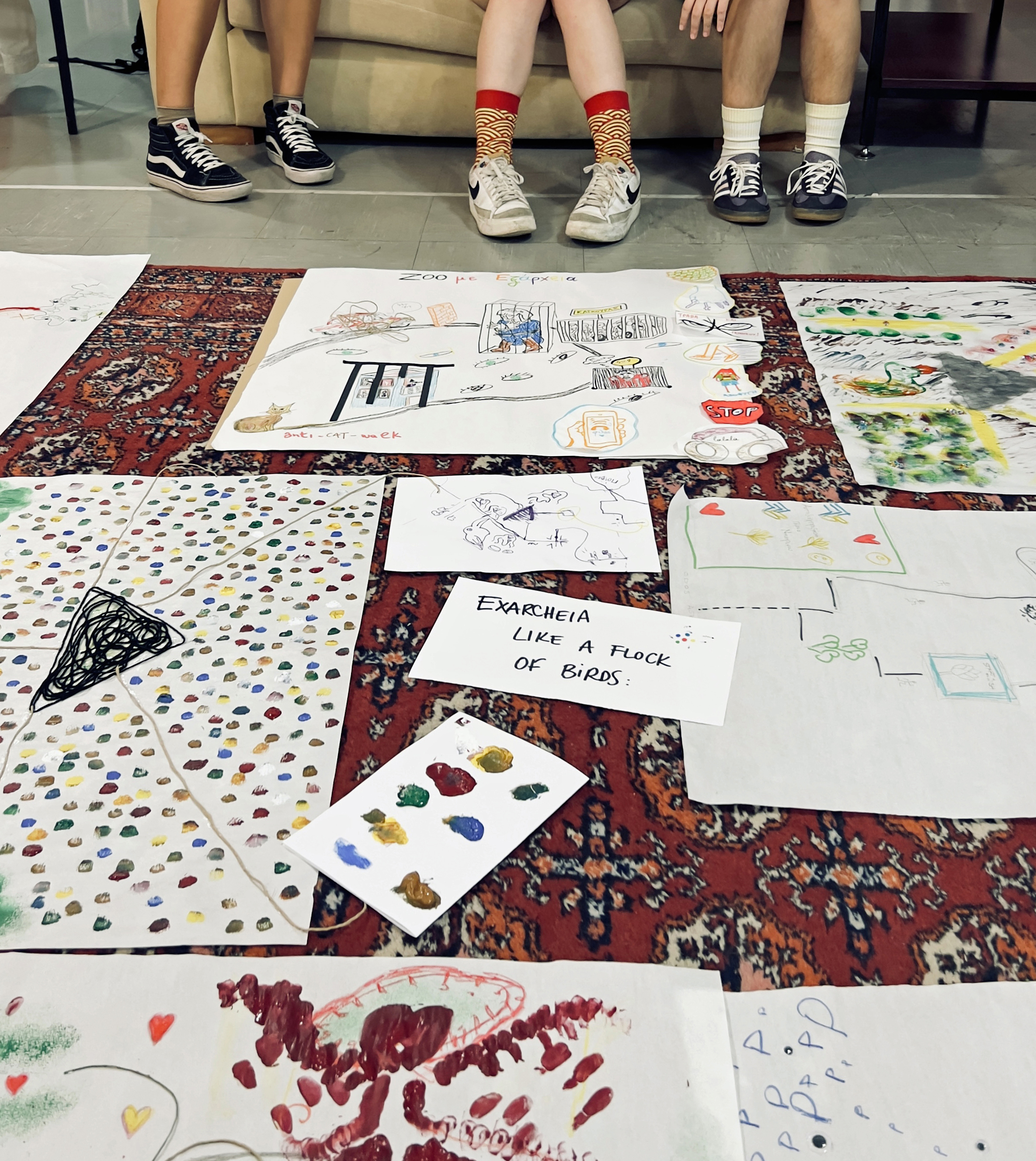 Avec une quinzaine de femmes, nous nous sommes réunies pour discuter de ce que nous ressentions en marchant dans les rues d’Exárcheia. Certaines d’entre nous habitaient le quartier, d’autres y travaillaient ou le fréquentaient souvent.