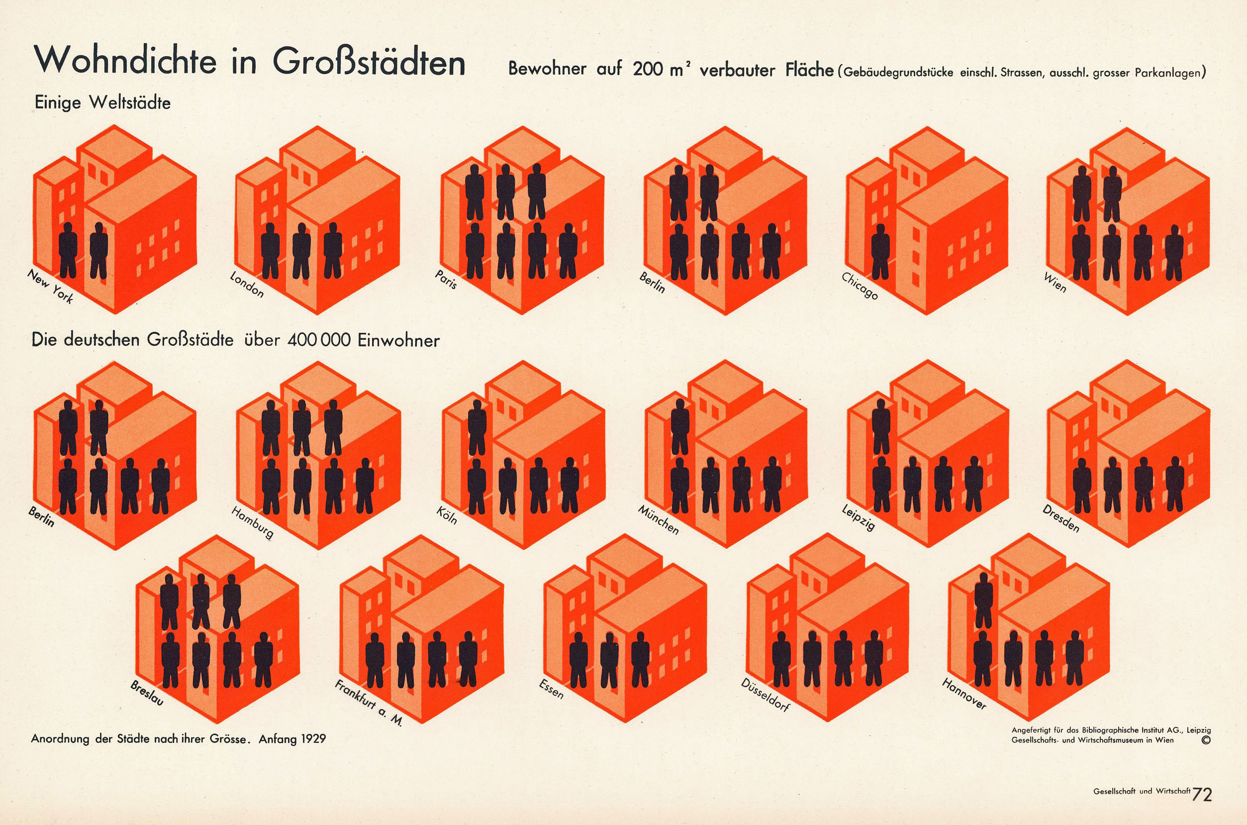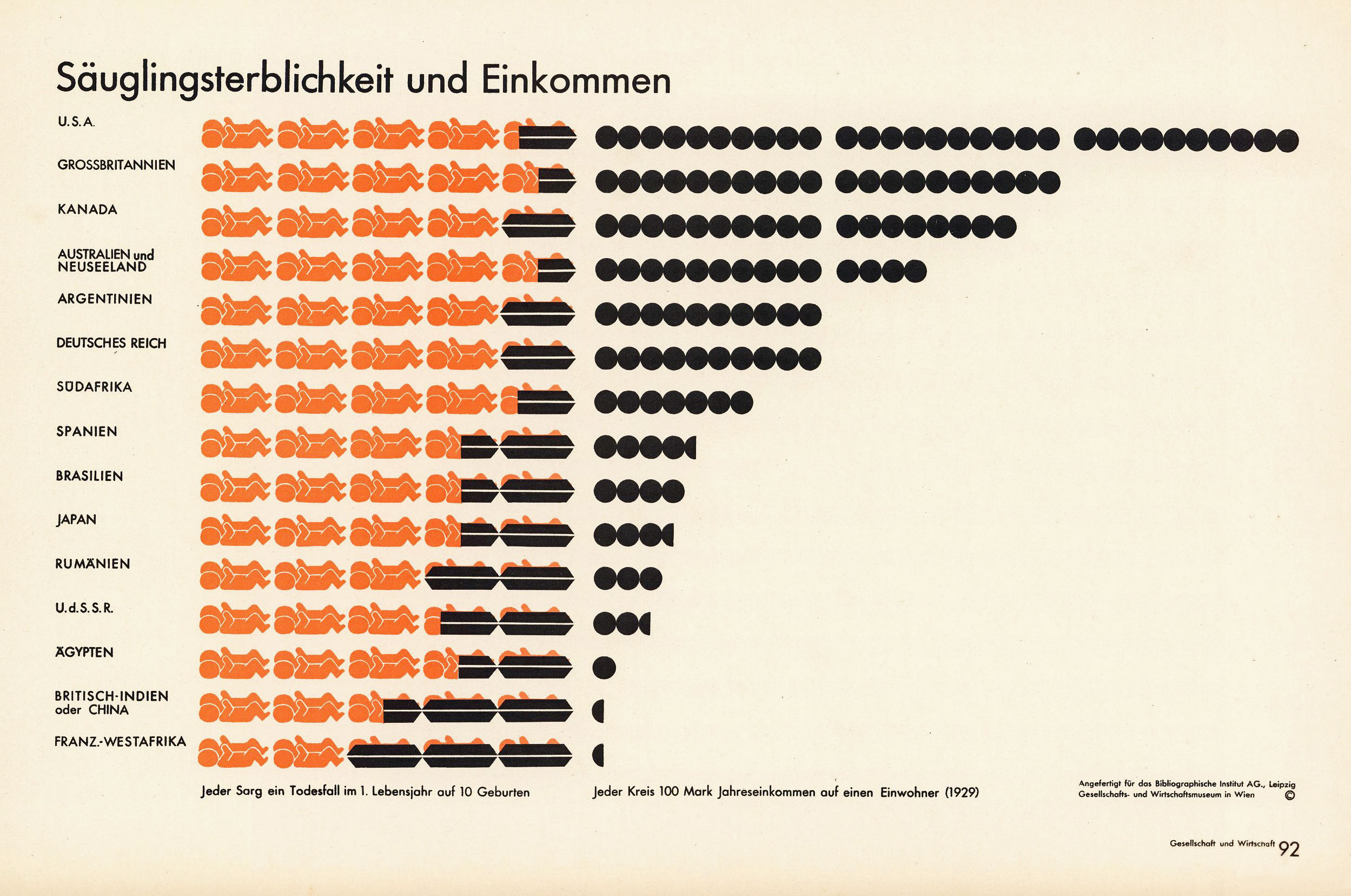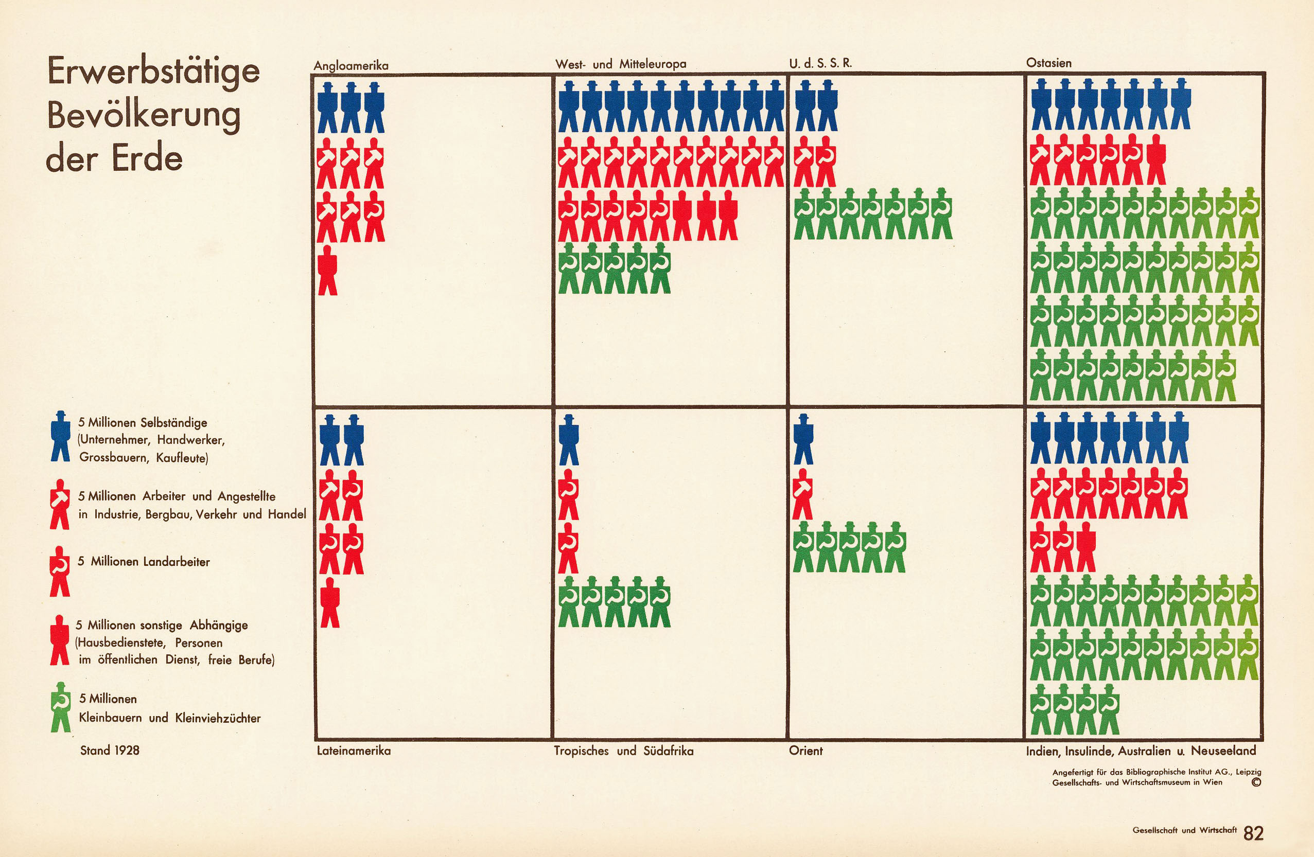 En 1925, Neurath crée le Musée économique et social (Gesellschafts- und Wirtschaftsmuseum, GWM) de Vienne, où verra le jour la « Bildstatistik nach Wiener Methode » (« Méthode viennoise de statistiques par l’image ») que Marie Reidemeister/Neurath rebaptisera Isotype (acronyme de International System of Typographic Picture Education). Cette méthode graphique de visualisation deviendra une référence mondiale en matière de design de l’information et s’exportera de l’Union soviétique jusqu’aux États-Unis. Aujourd’hui, les figures Isotype font partie intégrante de notre culture visuelle.
