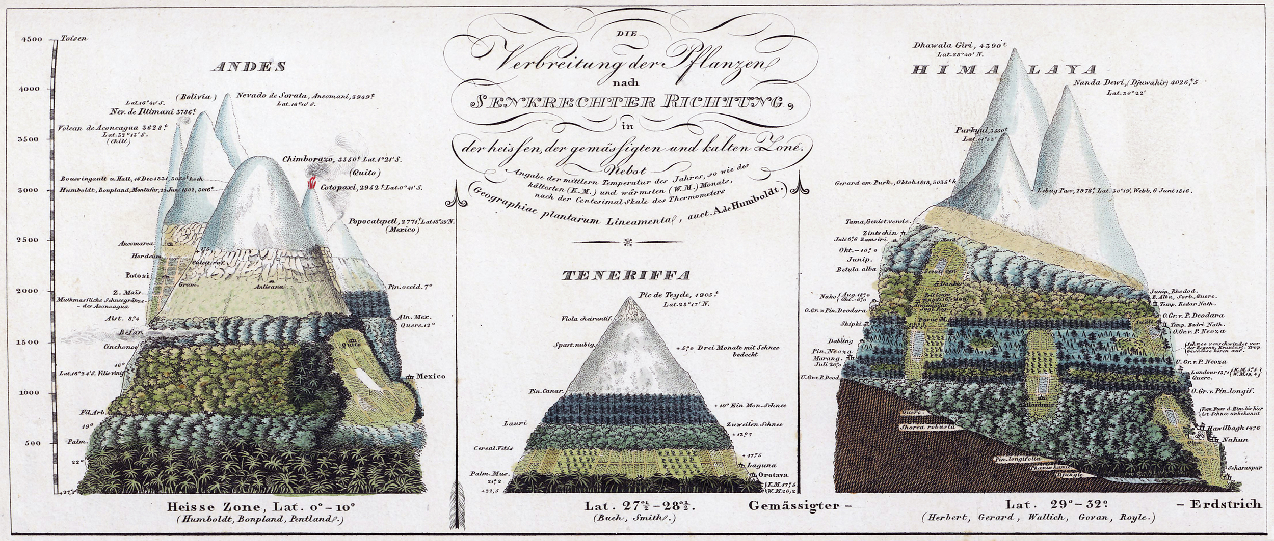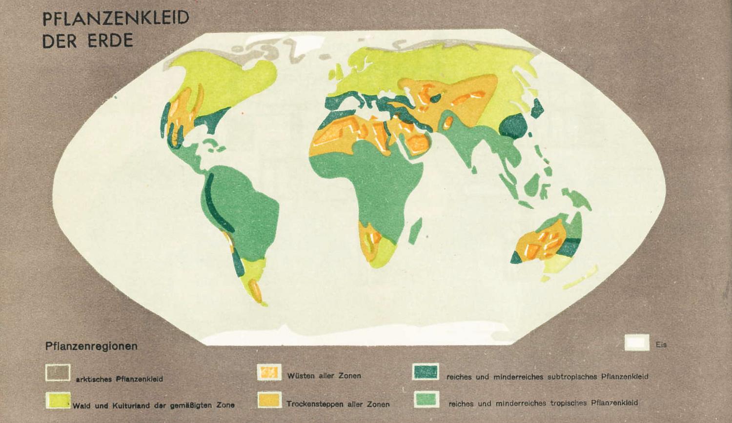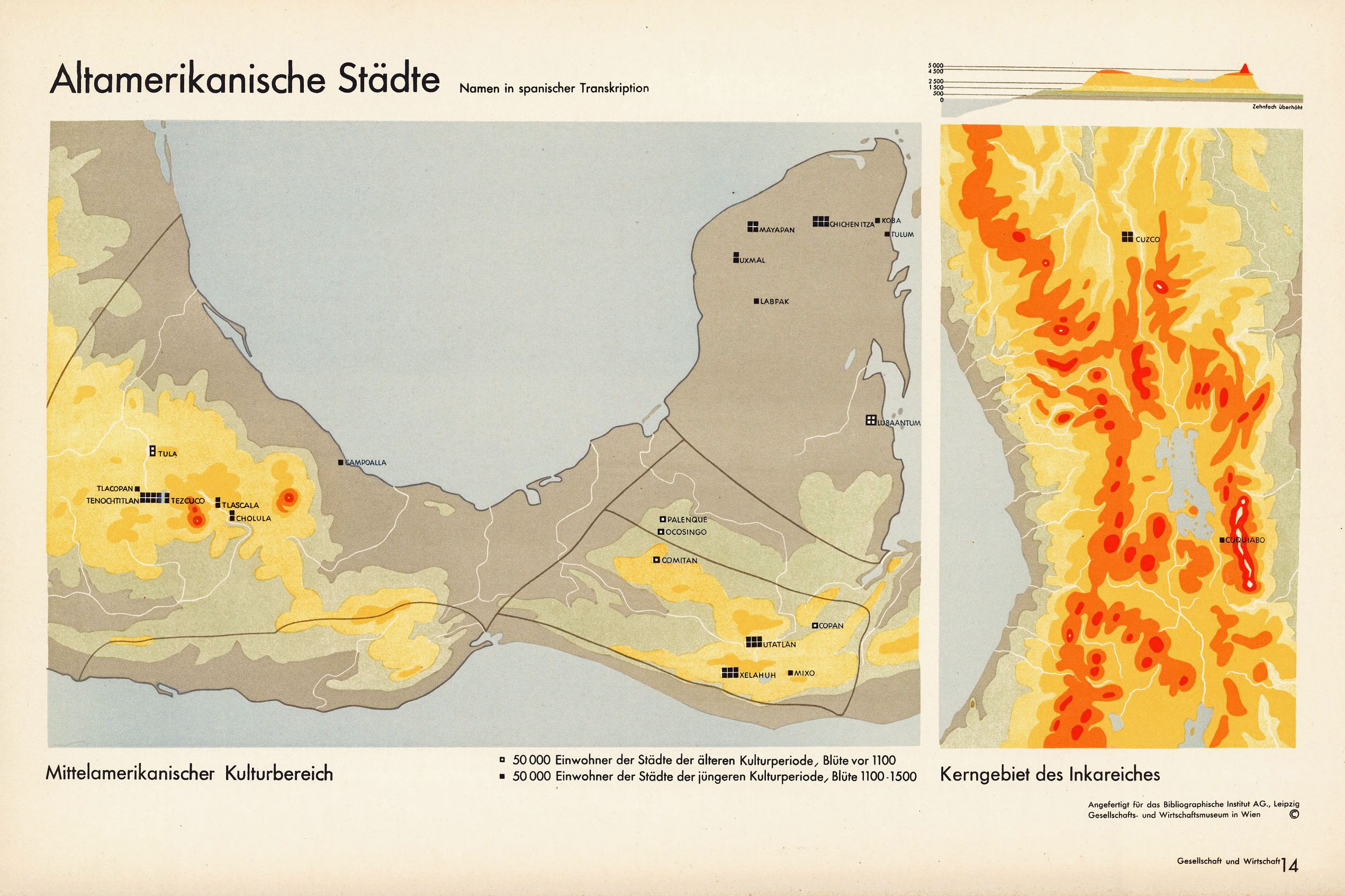 Viennent ensuite les livres, livres illustrés, atlas qu’il trouve par milliers dans la bibliothèque familiale, et dont il absorbe goulûment le « contenu visuel ». Dans le Physikalischer Atlas de Heinrich Berghaus, il découvre la richesse du monde, dans le Kosmos d’Alexander von Humboldt, l’histoire de la géographie [3]. Il se rend alors compte que pour comprendre une carte et mémoriser l’essentiel des informations, les légendes, ces « énoncés visuels », suffisent. On peut parfaitement se passer du texte...