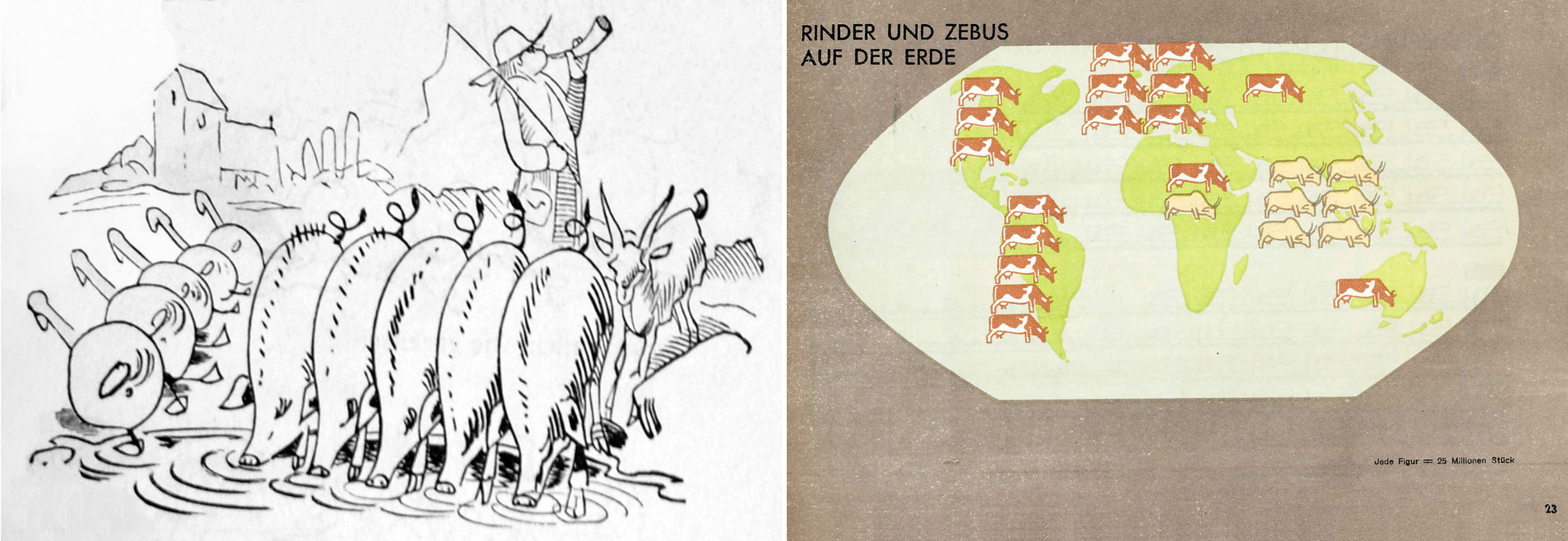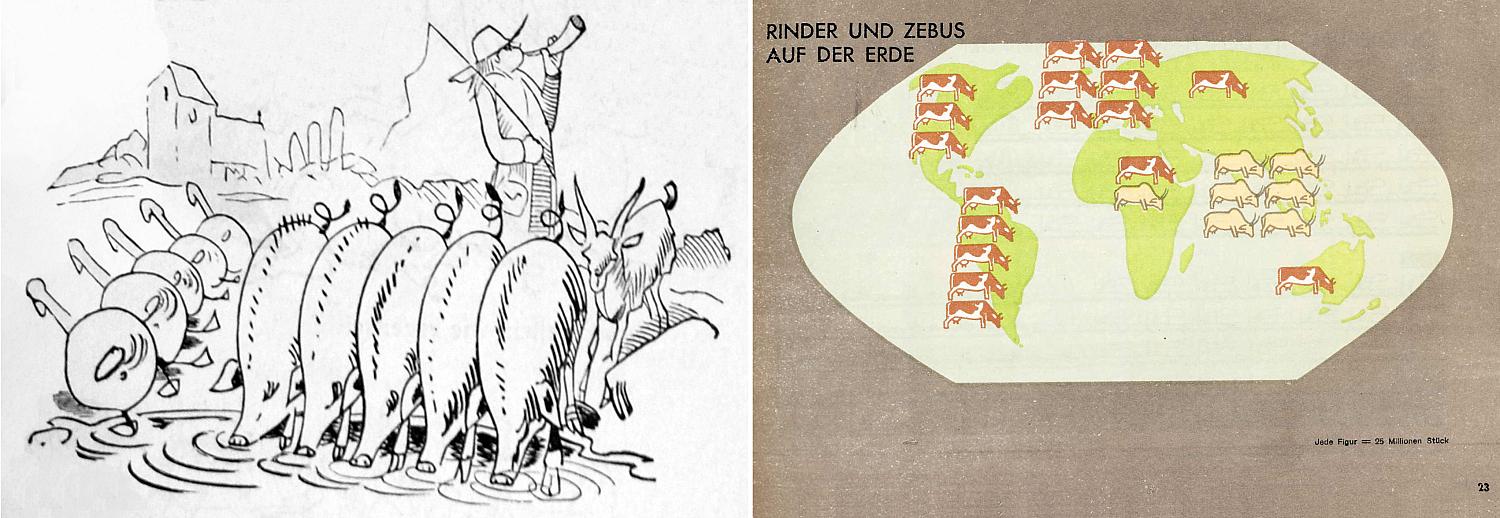 Une carte géographique mariée à l’Isotype devient un nouvel objet, une sorte de carte augmentée, un « cartogramme ». En associant symboles et fond de carte, l’Isotype met en exergue la relation de dépendance réciproque des humains et de l’environnement. Dans cette approche anthropologique, les perspectives se croisent et dévoilent des relations de cause à effet insoupçonnées.