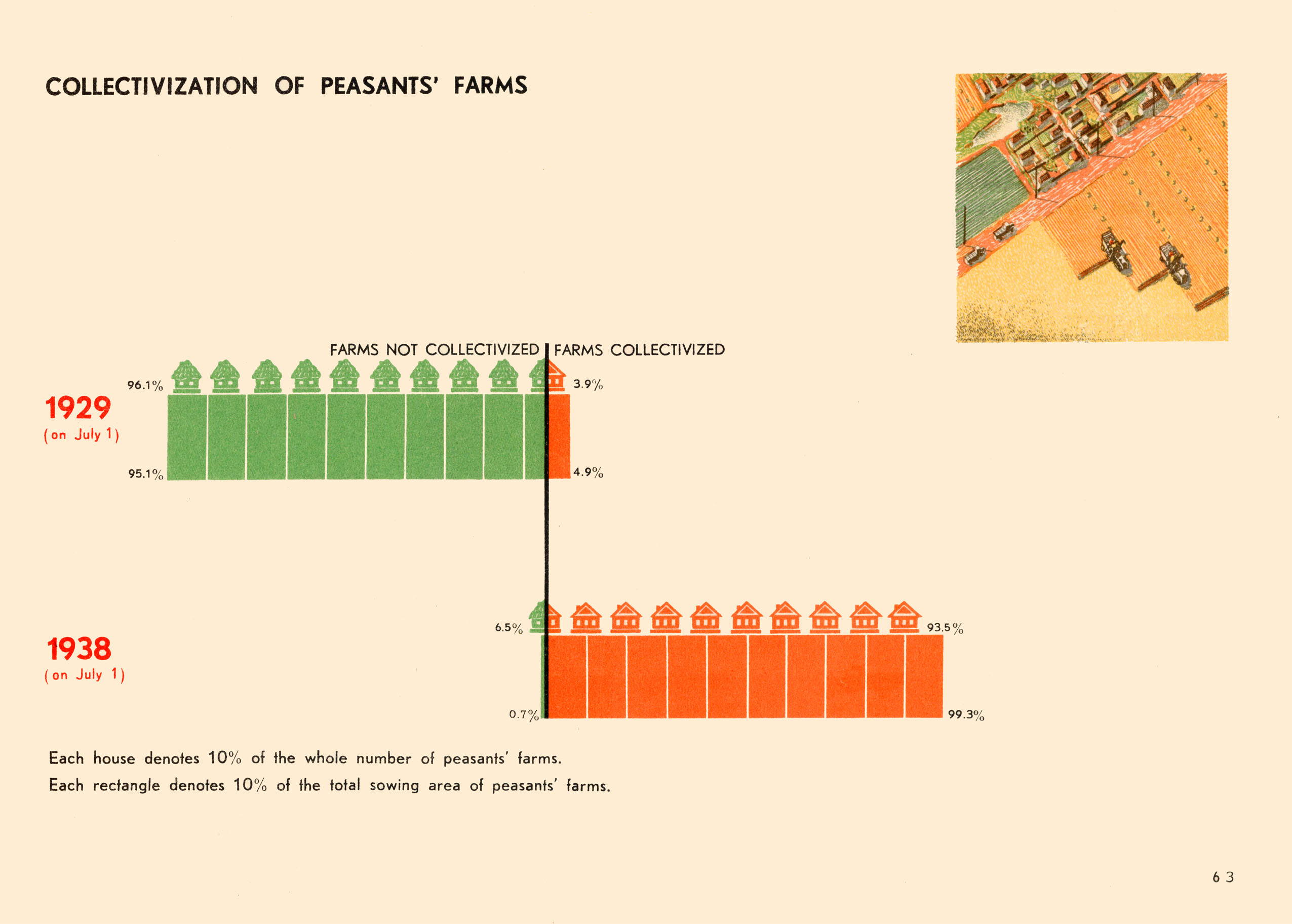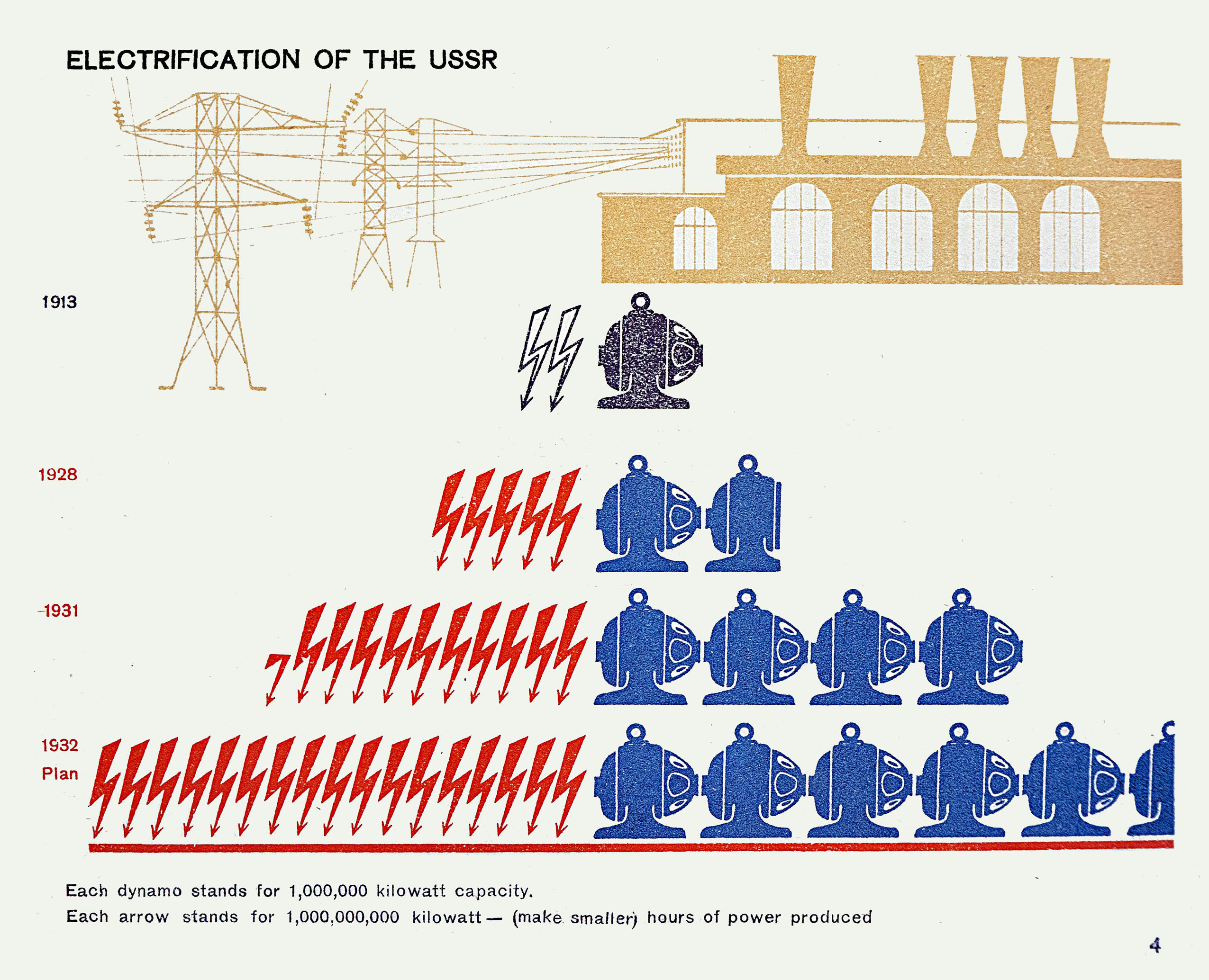 Les affiches politiques soviétiques d’avant les années 1930 n’utilisent pas encore la méthode Isotype pour représenter des statistiques, soit la représentation des quantités par la répétition d’un pictogramme identique, et se contentent d’orner d’illustrations et de commentaires des graphiques de courbes ou de recourir à des symboles de tailles variables pour représenter des quantités. Ce n’est qu’à partir des années 1930 et avec la contribution de l’équipe de Vienne à l’Izostat, que l’Isotype se retrouvera dans les visualisations soviétiques de statistiques.