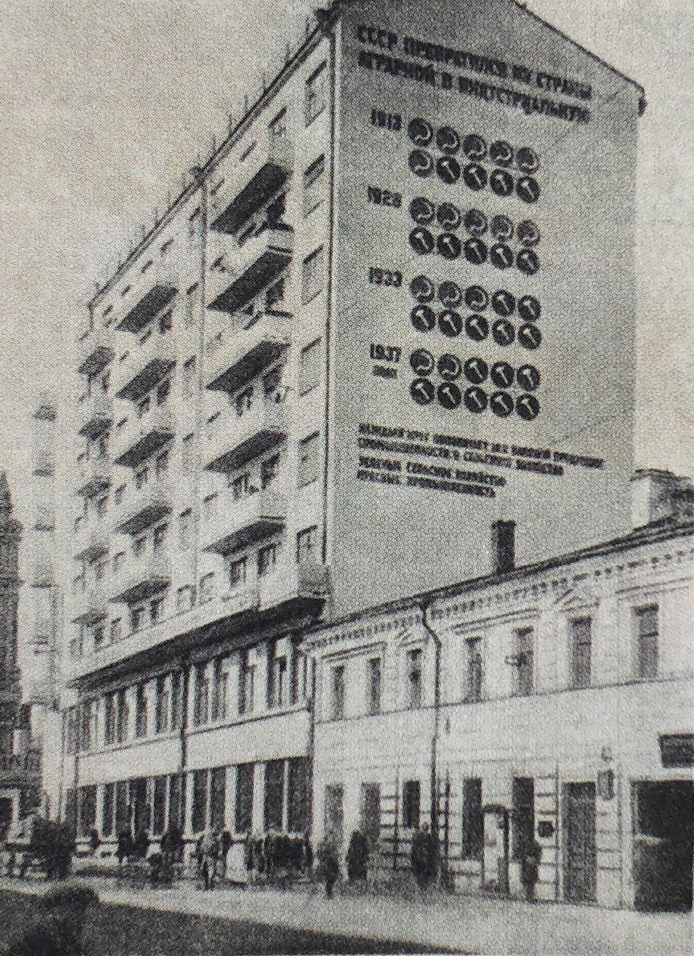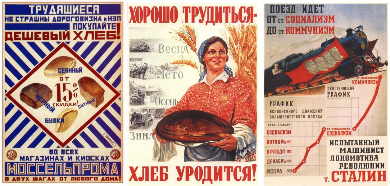 Dans les kolkhozes et les fabriques, il est courant d’afficher des graphiques de statistiques louant les exploits des meilleurs sujets (et d’instaurer ainsi une concurrence entre les gens). Ces visuels sont réalisés sur place, mais les artistes aussi, notamment les constructivistes, mettent leur art au service de l’affiche politique, y intégrant des données chiffrées. Depuis le début des années 1920, de nombreuses affiches vantent donc les succès de la Nouvelle politique économique/NEP (1921-1928), puis, après la grand tournant stalinien de 1929, ceux du premier plan quinquennal.