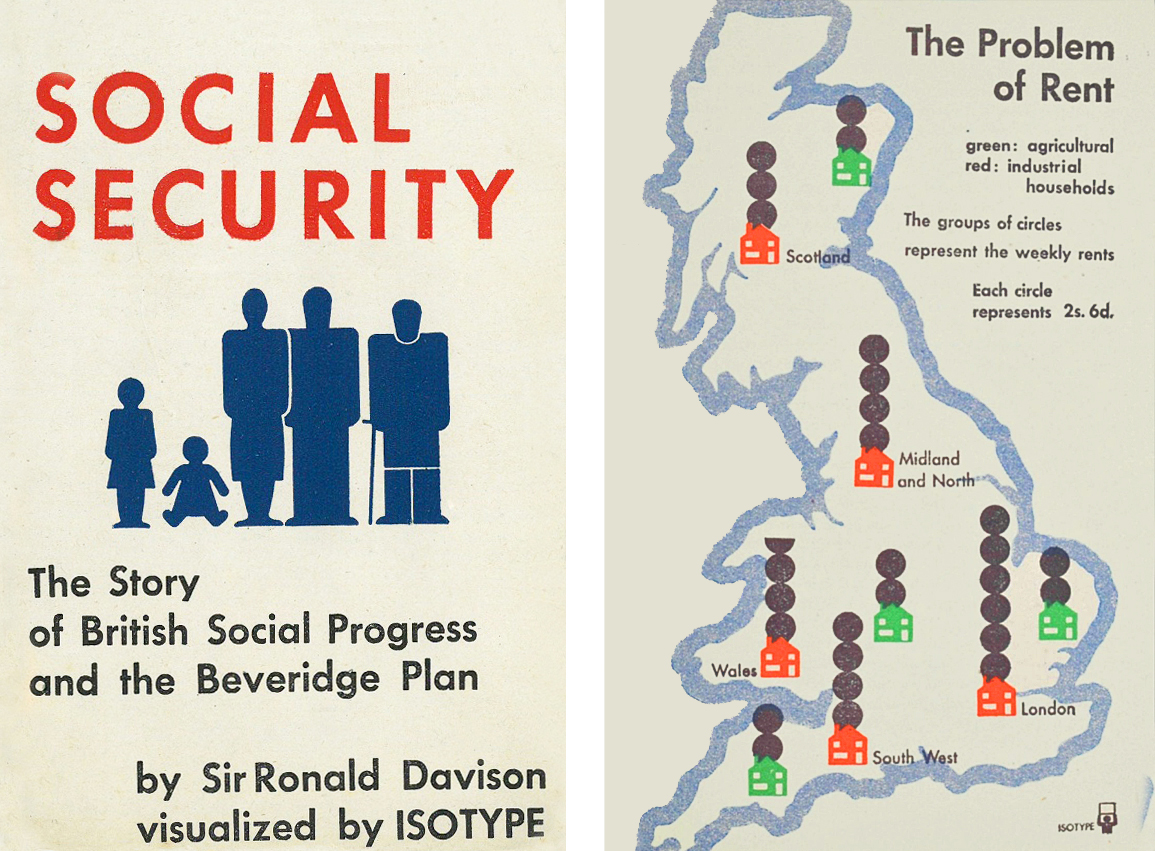 Quelque soit le type de système économique adopté par un pays, la statistique, l’art de collecter des informations sur un État, a été progressivement intégrée aux politiques de gestion et a même fini par devenir un « outil de preuve » [2]. Lors de la crise capitaliste des années 1930, la nécessité d’une intervention de l’État dans la marche des économies nationales étant devenue indispensable, les campagnes nationales de communication vont tout naturellement utiliser des indicateurs économiques et des données statistiques simplifiées pour promouvoir et justifier les politiques publiques. La visualisation par des graphiques ou des cartogrammes connaît ainsi une belle envolée entre les deux guerres mondiales en Occident, comme en attestent les campagnes d’information du New Deal de Franklin Delano Roosevelt ou les brochures du gouvernement britannique vantant le projet social travailliste de l’économiste William Beveridge pendant la Seconde Guerre mondiale.