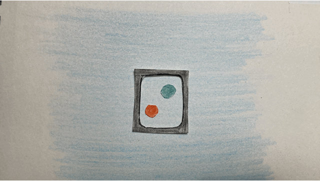 Imaginons alors la situation représentée par deux balles, une rouge et une verte, se trouvent dans un ascenseur vitré situé dans l’espace. Cette expérience aurait pu être menée par Willy Wonka, Charlie et son grand père dans « Charlie et le grand ascenseur de verre », de Roald Dahl, paru en 1972.