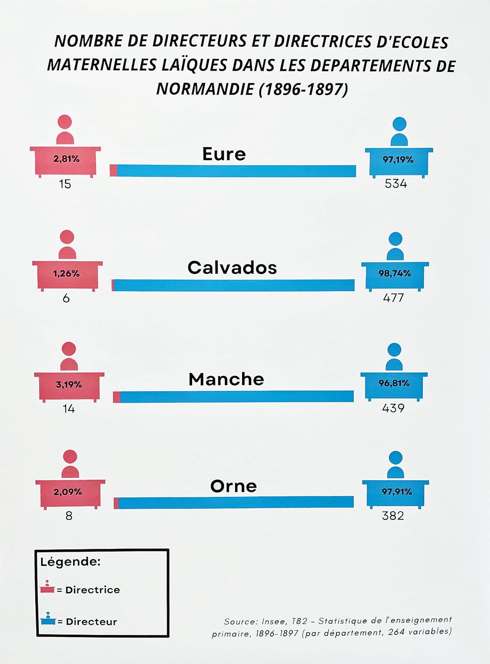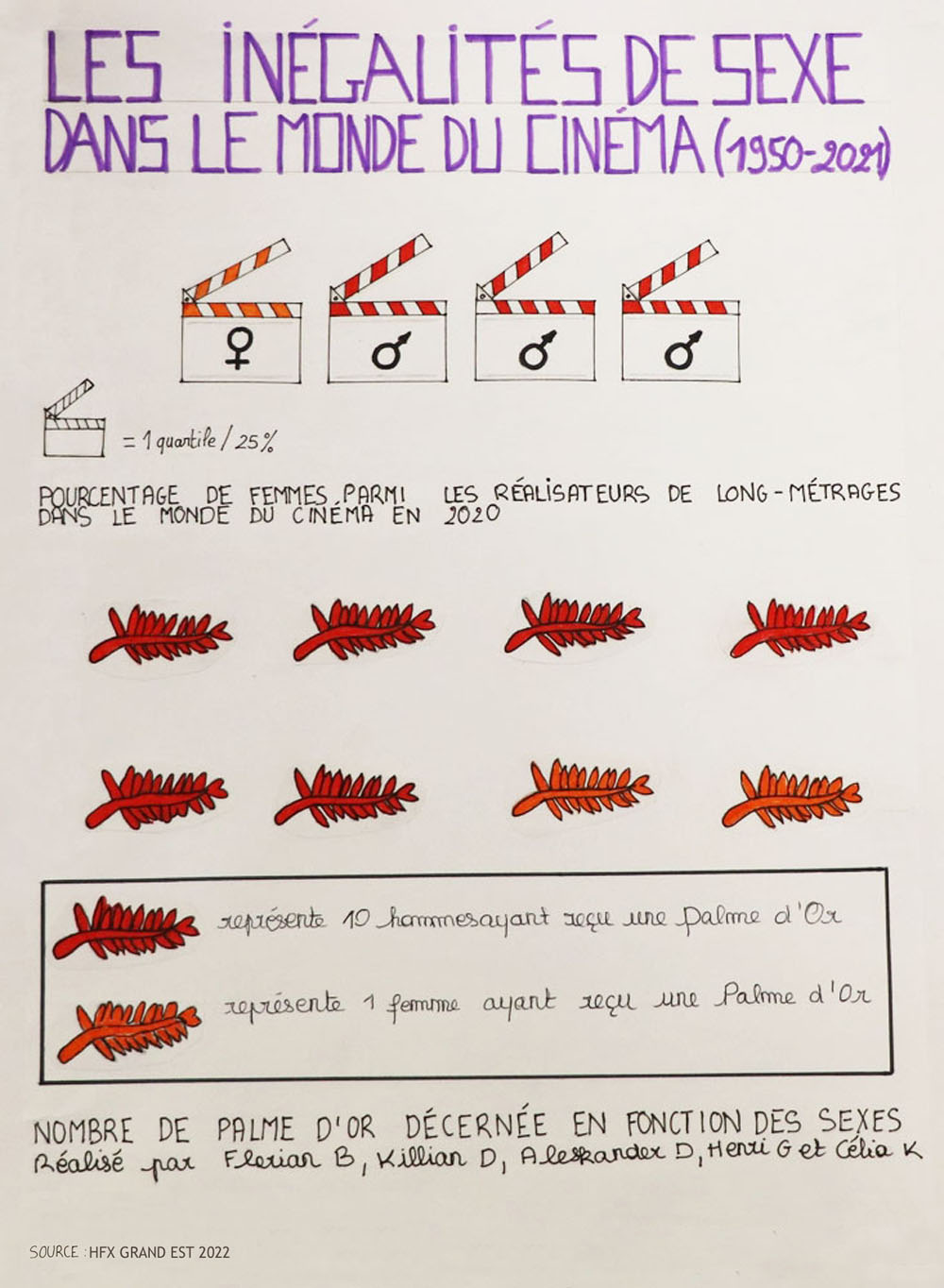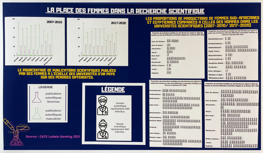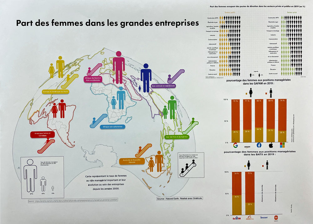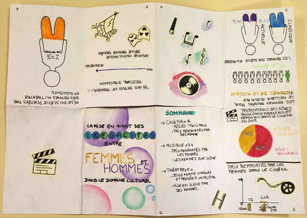 Apprendre aux jeunes à porter un regard critique sur la construction de la connaissance est l’un des défis de l’éducation et le meilleur garant du respect de la démocratie. Pendant l’année scolaire 2022/2023, 80 élèves du lycée Porte de Normandie de Verneuil sur Avre ont travaillé sur la question de l’égalité femmes-hommes, notamment dans le domaine des études, de la recherche, de la vie économique, de la politique et de la culture. Leurs graphiques Isotype, réalisés à partir de bases de données publiques, font l’état des lieux de l’un des grands enjeux du XXIe siècle : l’égalité des chances et de traitement entre les femmes et les hommes.