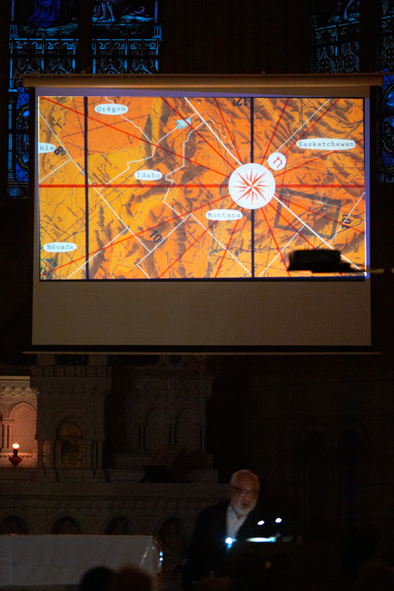 À certaines étapes du voyage – certaines cartes ou parties de cartes –, les deux performeurs disent des textes. Extraits des documents cartographiques, textes explicatifs, historiques, anciens ou récents, poésie ou encore forgeries…, ils constituent un contrepoint au piano et entrent en résonance avec les cartes.
