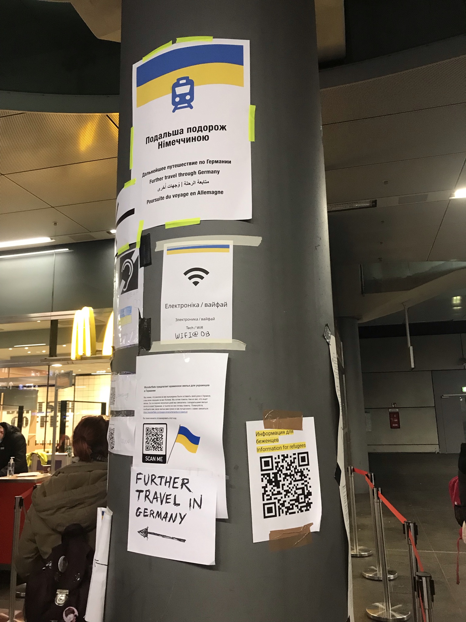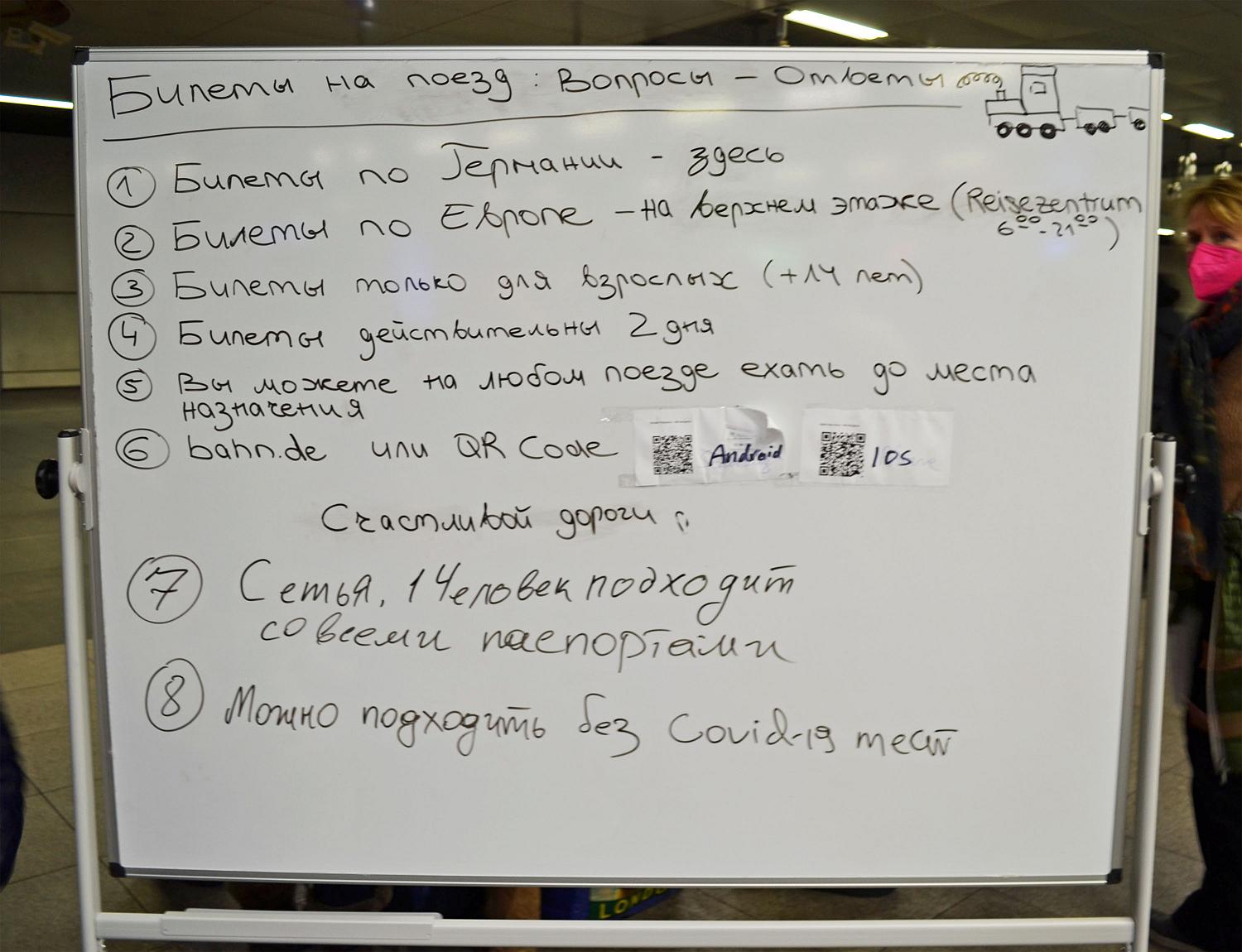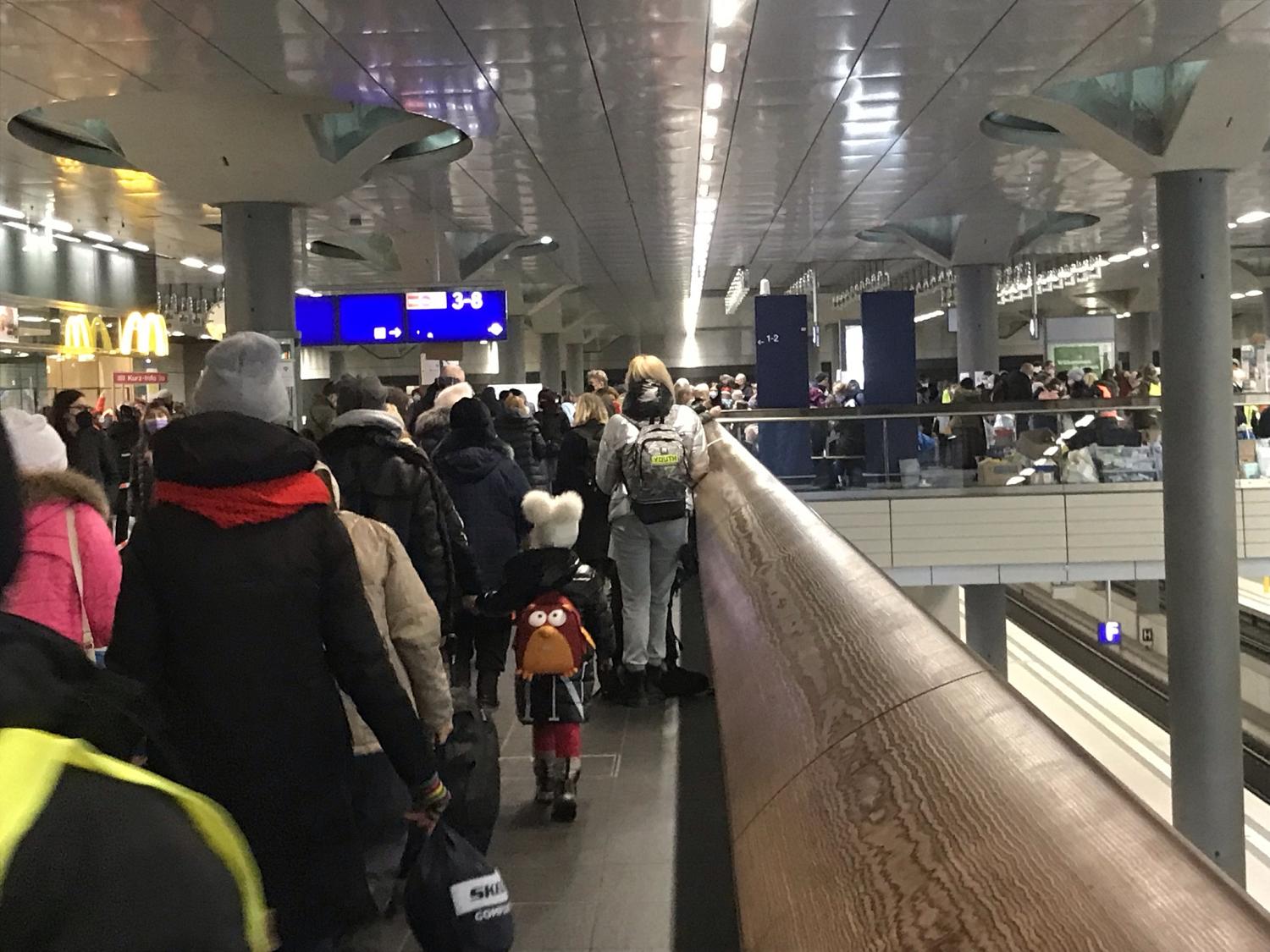 Les tickets « Helpukraine » permettent aux personnes munies d’une passeport ukrainien de voyager gratuitement avec la Deutsche Bahn. Arrivées à Berlin par les trains spécialement affrétés pour l’occasion, beaucoup d’entre elles sont désorientées.