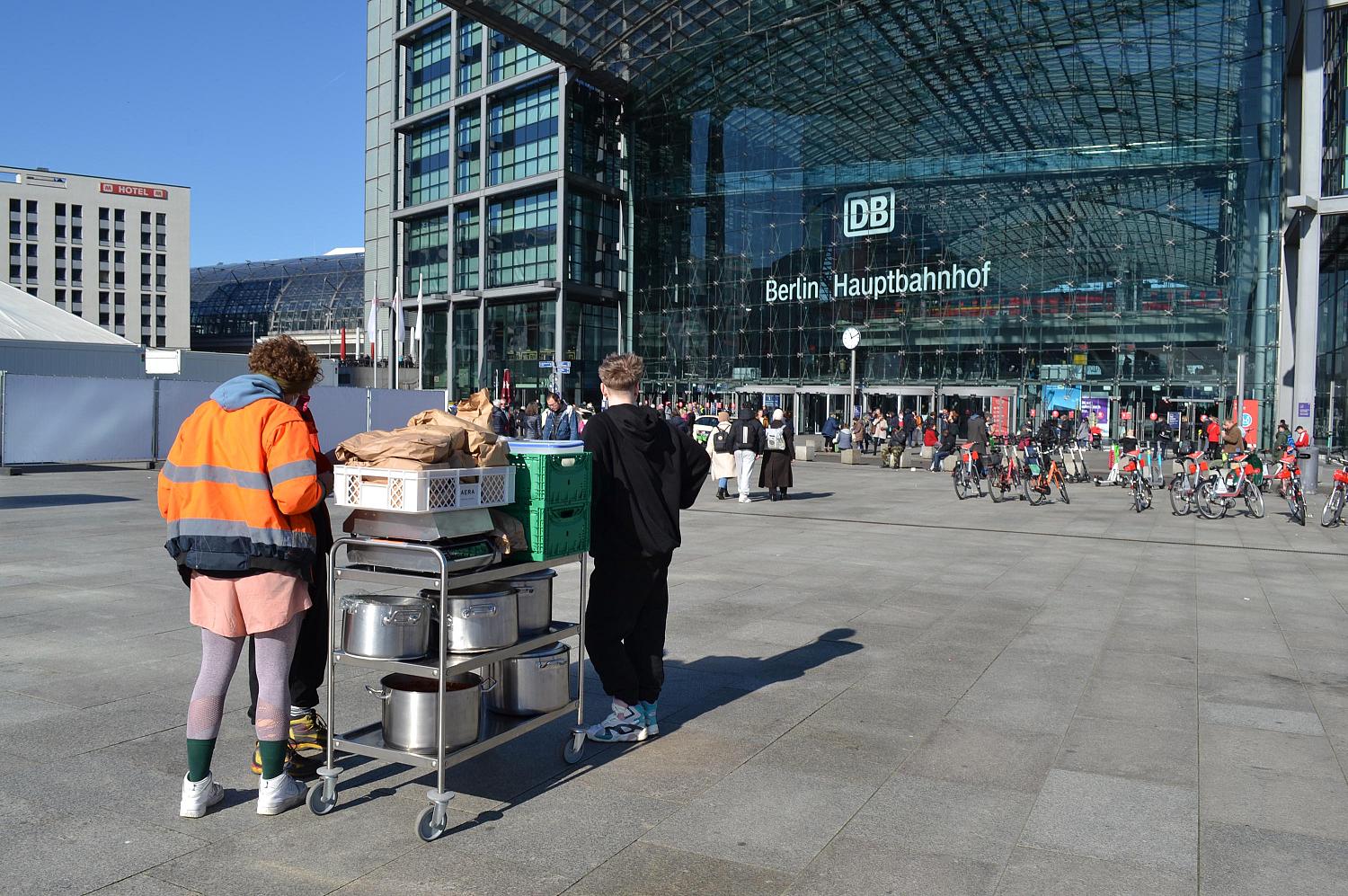 11 heures du matin, le 8 mars. Un petit groupe pousse un chariot vers la porte principale de la gare : une centaine de repas de midi, préparés par des personnes dont cuisiner est le métier. Elles n’appartiennent à aucun organisme officiel. Elles font cela « parce que c’est nécessaire ».